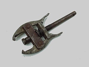 Use: This tool is used to pull pulleys from their mounts. The outside "arms" are placed over the rim of the pulley and the center post is screwed down to pull the pulley loose.