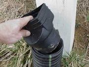 Step 13: A plastic coupler is added to the drainpipe. |
